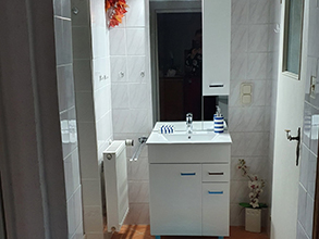 Der Waschplatz mit Eingang rechts ins WC und Links in die Dusche.